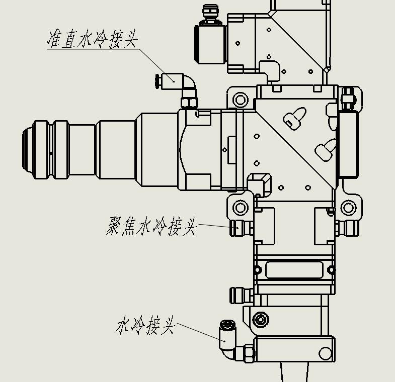 水冷固定板上,有進(jìn)水口和出水口。建議功率高于1000瓦時,啟用水冷裝置。此外,本系列切割頭功率不能大于2000瓦。管道結(jié)構(gòu)請參考圖4。