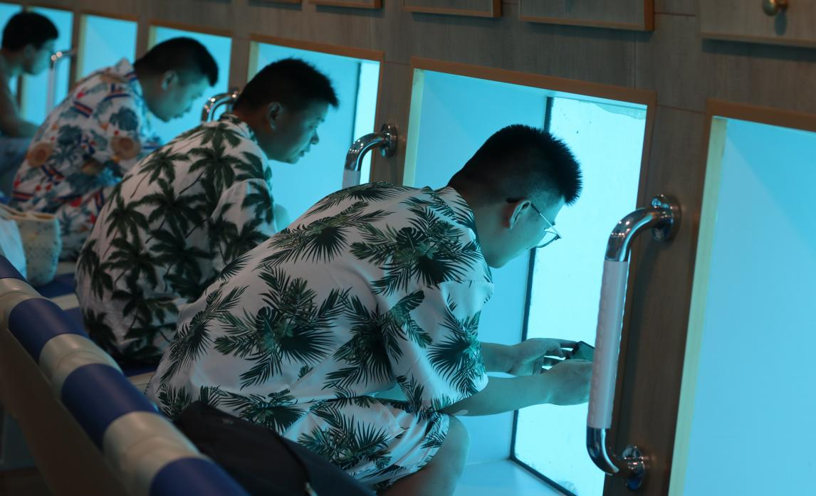 在這一天,我們玩的酣暢淋漓,一時(shí)分不清海水與汗水,熱烈的陽光照耀著,讓我們都睜不開眼,大家嬉笑打鬧,在蜈支洲島留下屬于我們的印記。
