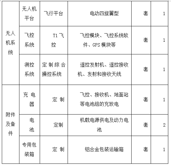 1、飛行平臺參數